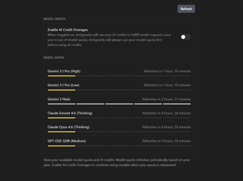 Halfway through the migration, the model cut me off. Quota exhausted. I checked the dashboard and every model I had access to was either at zero or on its way there. Gemini 3.1 Pro: locked for over an hour. Claude Opus: four hours. Even Flash was running low. I'm paying for Google's AI Ultra plan. The highest tier they sell. And it was Wednesday afternoon.